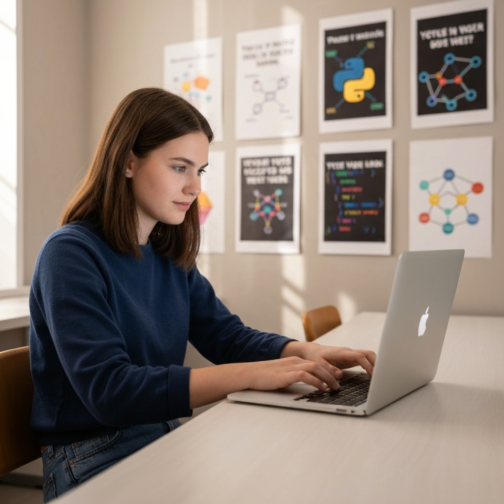 You will need to have a regular laptop or a desktop. You also need to have a reliable internet connection. If you know some basic things about computers, like how to browse and manage files, you are ready to go. You can start even if you have no knowledge of Python yet. A good course will teach you everything you need. This includes how to use the Python installer package, called PIP, for adding and using libraries, such as the random module.